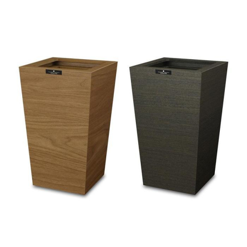 シャープなイメージの木合板ダストボックス。フローリングにも映える木目テイストが印象的です。