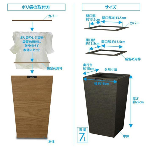 【ポリ袋留めの枠付き。上部にはカバーもついて見た目もスマート】