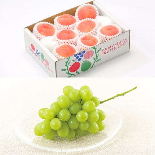 山形連携中枢都市圏における共通返礼品です。関係市町(山形市、寒河江市、村山市、尾花沢市、山辺町、中山町、河北町、西川町、大石田町、大江町)で生産された桃、シャインマスカット、ラ・フランス、りんごをお届けします。