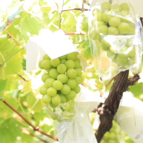 『シャインマスカット』皮ごと食べられる、人気の種なし大粒ぶどうです。