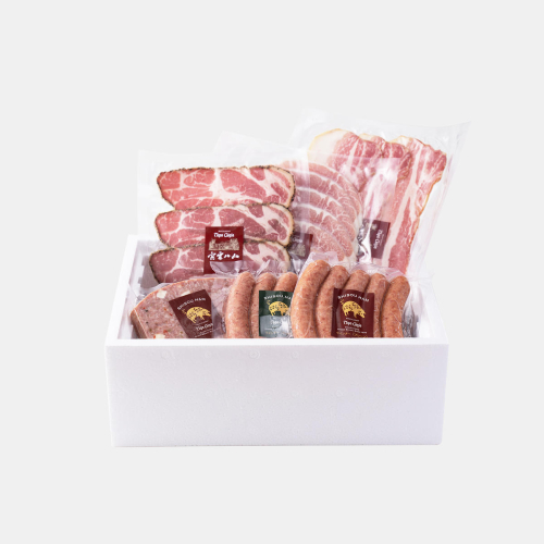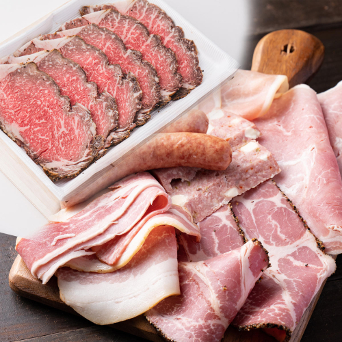 こだわりの国産豚を用いて、伝統的な手法で丁寧に仕上げたハム、ウインナーの詰め合わせ。豚肉に直接職人の手で塩、スパイスを擦り込み、2週間以上熟成させ、直火式スモークハウスでじっくり燻製した逸品です。