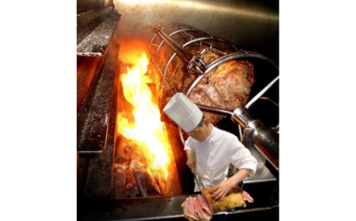 専用ロースターを用い炭火のみで500℃~1000℃の火力を調整しながらサーロインの塊肉1本1本を約2時間かけてシェフが熟練の技術で焼き上げます。