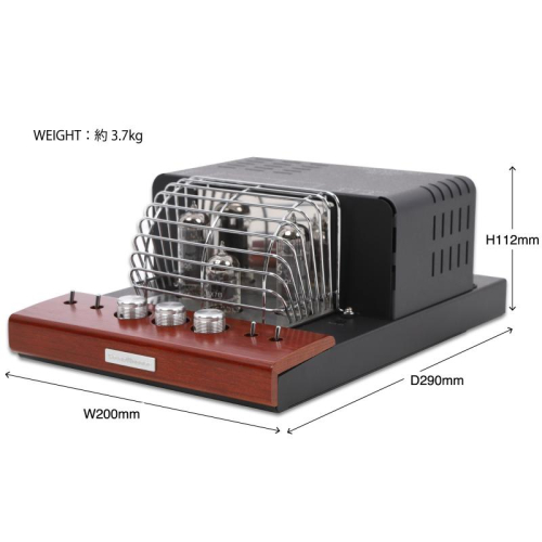 - ・真空管構成:プリ段 双三極管(12AU7・他)×1本、パワー段 五極管(6BQ5・他)×1本