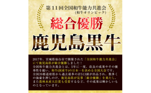 芸術品といわれる鹿児島黒牛の最高級牛肉を、ステーキでお召し上がりください。 5年に1度開催される「第11回全国和牛能力共進会(和牛オリンピック)宮城大会」で「畜産王国かごしま」が ★見事「和牛日本一」に★ お肉の最高峰「黒毛和牛」の中でも選び抜かれたA5等級を、丸ごと1頭買いしています。 鹿児島の黒毛和牛は、風味とコクのある柔らかい肉質と、筋繊維にバランスよく織り込まれた霜降りの織り成す、とろけるような食感が特徴です。 強火で焼き上げれば、肉汁ジュワッと絶品ステーキの出来上がりです。 かごしま黒毛和牛の証明書付。 有限会社食肉総専門 今肉屋 0995-42-1023 【消費期限】 加工日より30日(要冷凍-18℃以下)