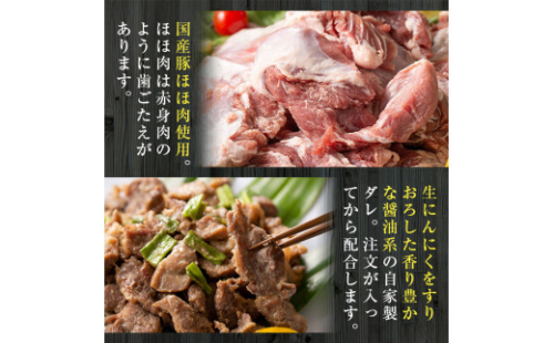 国産豚ほほ肉と国産鶏のナンコツ等(自家製だれの味付) 400g×3パック