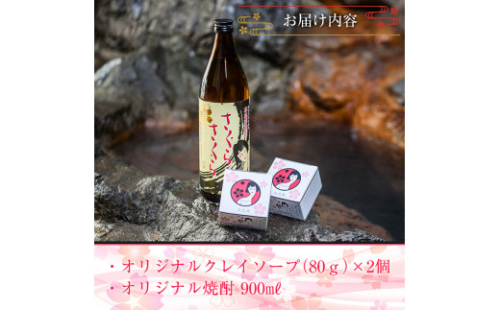A-037 さくらさくら温泉 オリジナルクレイソープ・オリジナル焼酎セット 155597 - 鹿児島県霧島市