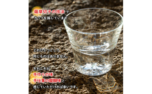 鹿児島の伝統的工芸品である薩摩切子。その技法を使い作りました。 鹿児島の心「桜島」をグラスの底に描き、『ガラスなのに、暖かい』を目指して一つ一つ手作りしています。 飲み物を注ぐと「桜島」が飲み物色に変わります。 こっぷ屋さん 0995-73-8131 《地産理由》製造の全工程を市内の工房で行っている。