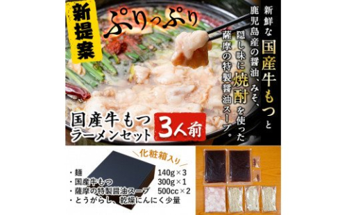A-166 国産牛もつラーメンセット(3人前)【鹿児島ラーメン】 155737 - 鹿児島県霧島市