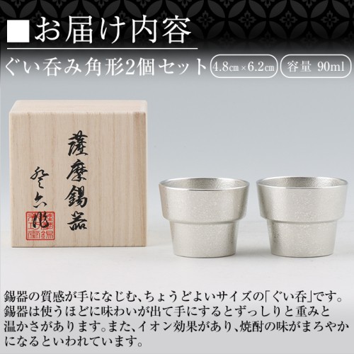 D-062 薩摩錫器 ぐい呑み角形 2個セット【薩摩錫器工芸館】 155849 - 鹿児島県霧島市