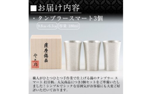 P-140 薩摩錫器 タンブラースマート3個セット【薩摩錫器工芸館】 155861 - 鹿児島県霧島市