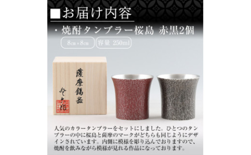 P-142 薩摩錫器 焼酎タンブラー桜島・赤黒2個セット【薩摩錫器工芸館】 155863 - 鹿児島県霧島市