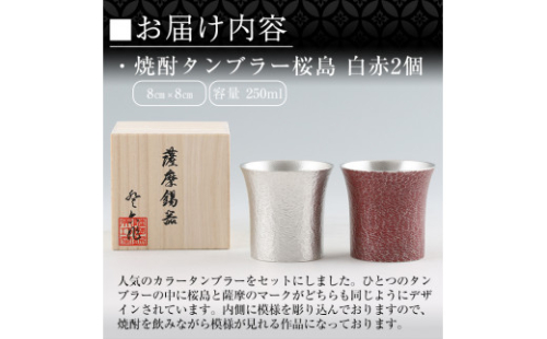 P-143 薩摩錫器 焼酎タンブラー桜島・白赤2個セット【薩摩錫器工芸館】 155867 - 鹿児島県霧島市