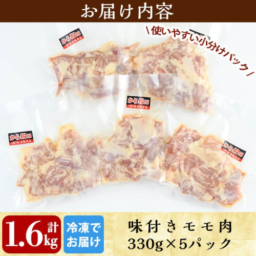 A0-239 国産!からあげモモ肉1.6kg(330g×5P)調理も簡単な揚げるだけの味付き唐揚げ用の鶏肉を使いやすい小分けパックでお届け【坂留鶏肉店】