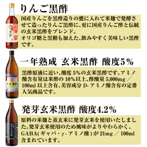 ・りんご黒酢:りんご酢(国内製造)、米黒酢、りんご果汁、イソマルトオリゴ糖、加工黒糖