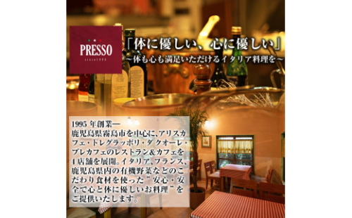 霧島神話豚のスペアリブを使用し、鹿児島の伝統料理「とんこつ」を洋風に仕上げた煮込み料理です。 《原材料名》 豚肉、玉ねぎ、なす、ズッキーニ、パプリカ、じゃが芋、牛乳、ブイヨン、トマトペースト、赤ワイン、ラード、香辛料、食塩、砂糖、小麦粉 《地産理由》 市内で調理・加工した加工品 【賞味期限】 お届け日より10日以内 ※お受け取り後はお早めにお召し上がりください。 有限会社プレッソ 0995-43-7788