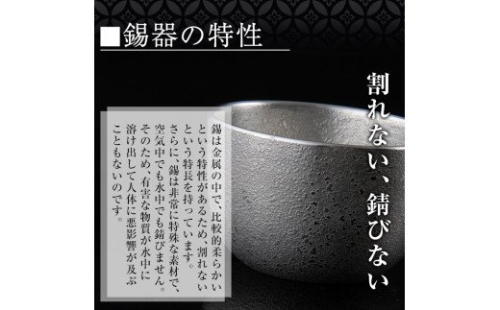 錫は昔から入れたお酒の味をまろやかにするといわれてきました。おいしい焼酎を錫器と一緒にお楽しみ下さい。