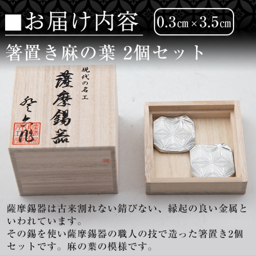 B0-171 薩摩錫器 箸置き(麻の葉)2個セット【薩摩錫器工芸館】 156018 - 鹿児島県霧島市