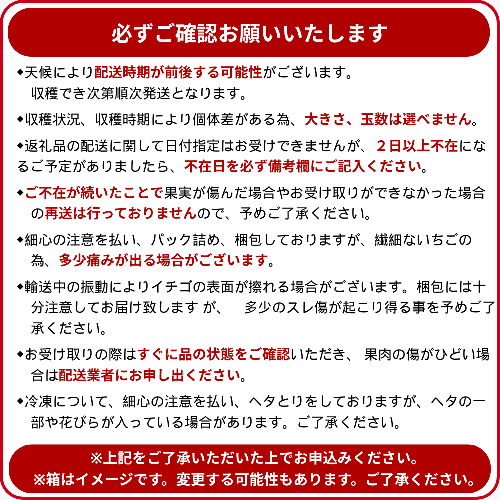 ・細心の注意を払い、パック詰め、梱包しておりますが、繊細ないちごの為、多少痛みが出る場合がございます。