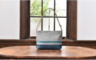 岡喜近江牛レザーと帆布のタテ型ショルダーバッグ グレー/琵琶湖ブルー【CC18W】