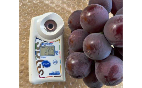 また、定期的に代表サンプルで糖度を測定し、一定の糖度(18度以上)に達したぶどうから順番に出荷しています。