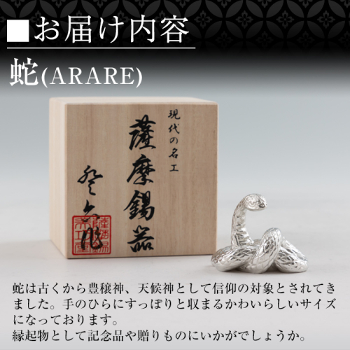 K-298 薩摩錫器 蛇置物 -ARARE- 白加工【薩摩錫器工芸館】 霧島市 鹿児島 伝統工芸品 錫製品 錫製 ヘビ 小物 置物 インテリア 日用品 ギフト 贈答 贈り物 プレゼント 縁起物 1570023 - 鹿児島県霧島市