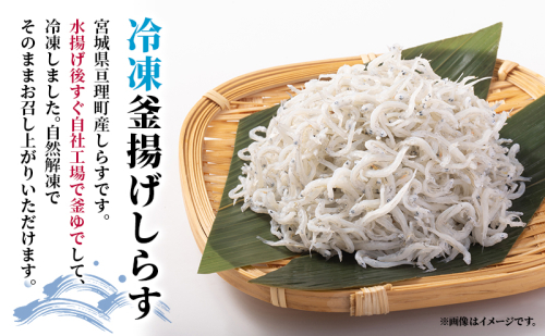 宮城県亘理町産しらすです。水揚げ後すぐ自社工場で釜ゆでして、冷凍しました。