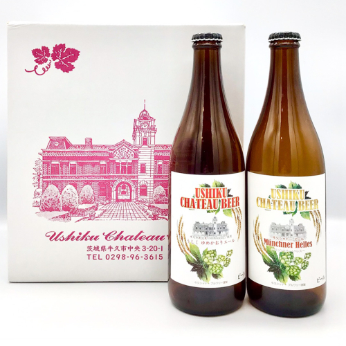 相葉ヒロミのお困りですカーに『牛久シャトー』が登場! ◆◆牛久シャトー ブルワリーの醸造が新たにスタート! 牛久シャトービール2種セット!◆◆ 年間40万人の来場者を記録する牛久市を代表する観光施設「牛久シャトー」。 国の指定重要文化財、日本遺産、近代化産業遺産に登録されている日本初の「本格的ワイン醸造場」です。 創設者 神谷傳兵衛の志を継ぎ、1996年に醸造が開始された牛久ビールでしたが、 2018年に一部施設閉鎖に伴い、醸造が終了していました。 しかし2021年8月、牛久シャトー ブルワリーの醸造が新たにスタート! 新生牛久シャトービールを2種セットでお届けいたします。 2種のビールをぜひ飲み比べてお楽しみください! ●ミュンヘナー・ヘレス ピルスナーに由来するビールで、すっきりしたのど越しの黄金色に輝く淡色ビールです。 麦芽の旨みが濃いのが特徴で、甘みがありホップの苦みを弱めにあっさりとした飲み心地に仕上げております。 ●うしく ゆめかおりエール 地元牛久市産小麦『ゆめかおり』使用 ほのかな柑橘の爽やかな香りで、細かく口当たり滑らか。 エール酵母特有のフルーティーな味わいです。  ◇◆ーーーーーーーーーーーーーーーーーーーーーーー 明治の面影残る、日本初の本格的ワイン醸造場「牛久シャトー」 ーーーーーーーーーーーーーーーーーーーーーーー◆◇ 1903年(明治36年)、実業家である神谷傳兵衛が 牛久市に開設した日本で初めての本格的ワイン醸造場。 フランスに現存した醸造場をモデルに、ボルドー地方の技術を用いて、 葡萄の栽培からワインの醸造・瓶詰めを一貫して行なっていました。 2007年(平成19年)11月には「ワイン」の遺産群として近代化産業遺産に認定、 2008年(平成20年)6月には牛久シャトー旧醸造場施設3棟が 「最初期の本格的ワイン醸造場施設」として国の重要文化財に指定。 そして2020年(令和2年)6月に 茨城県牛久市と山梨県甲州市が共同申請したストーリー 「日本ワイン140年史~国産ブドウで醸造する和文化の結晶~」が 日本遺産(Japan Heritage)に認定されるなど、歴史的価値の高さが広く認められています。 現在、神谷傳兵衛記念館ではワイン醸造の歴史をご紹介しております。 煉瓦造のワイン貯蔵庫を改装したレストランでは カジュアルフレンチとワインをご堪能いただけます。 また、こだわりのワインやビール、オリジナル商品などを販売しており、 たくさんのご来場者様にお楽しみいただいております。 ◇◆ーーーーーーーーーーーーーーーーーーーーーーー 1世紀を超えて創業者の志を引き継ぎ誕生したビール ーーーーーーーーーーーーーーーーーーーーーーー◆◇ 牛久シャトー創業者である神谷傳兵衛は、ワイン醸造を成功させたのち、 ビール醸造に向け商標まで考案していました。 1世紀を超えて傳兵衛の志を引き継ぎ、2021年8月、 牛久シャトーであらたにビールづくりをスタートし、 牛久のお土産品として10月から提供を開始しました。 3種の牛久市産ビールをぜひお楽しみください。 【賞味期限】 製造から90日 【事業者】 牛久シャトー株式会社