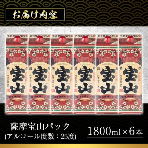 No.719 薩摩宝山パック(1800ml×6本) 焼酎 酒 アルコール 家飲み 宅飲み 芋 薩摩芋 米麹 国産 パック 常温 常温保存【西酒造】