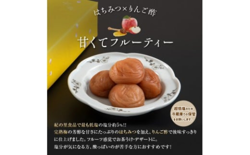 完熟梅の芳醇な甘さにたっぷりのはちみつを加え、りんご酢で後味すっきりに仕上げました。フルーツ感覚でお茶うけにも!