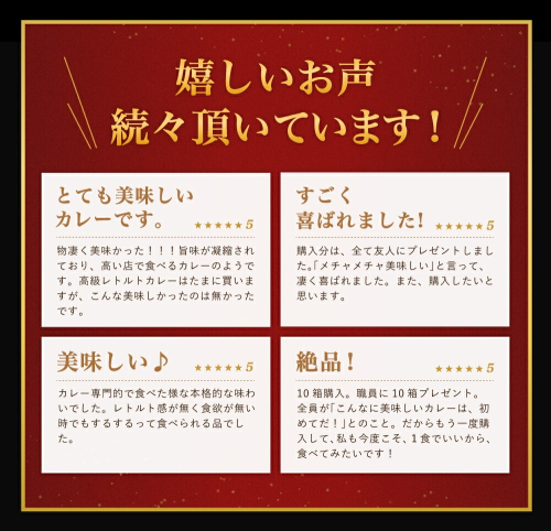 【原材料名】野菜(玉ねぎ、じゃがいも、にんじん、セロリ、にんにく)、牛肉(宮崎県産)、牛テール、カレールウ(豚脂、小麦粉、砂糖、その他)、糖類(砂糖、ブドウ糖)、食塩、しょうゆ、香辛料、調味料(アミノ酸等)、カラメル色素、乳化剤、酸味料、香料(一部に乳成分、落花生、小麦を含む)