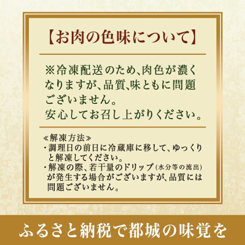 ※冷凍配送のため、肉色が濃くなりますが、品質、味ともに問題ございません。安心してお召し上がり下さい。