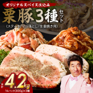 生姜焼き用タレ漬け 栗豚 切り落とし 4.2kg【小分け 300g×14P 豚肉 スライス 焼くだけ】 G3379