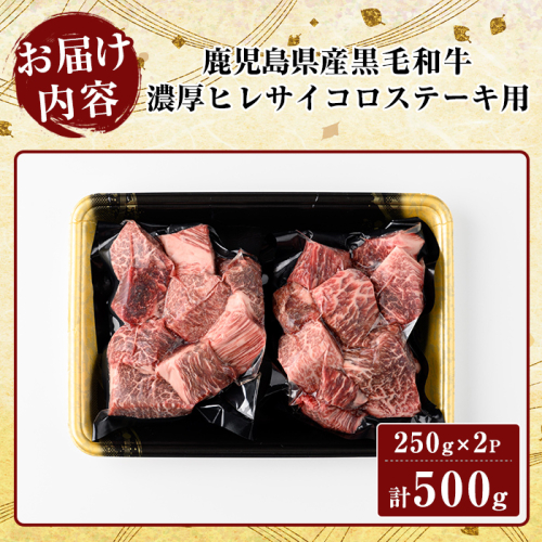 • K-327 鹿児島県産黒毛和牛 濃厚ヒレ サイコロステーキ用(計500g・250g×2P)【ビーフ倉薗】霧島市 牛肉 ステーキ フィレ 赤身 国産 鹿児島県産 黒毛和牛 肉 精肉 牛