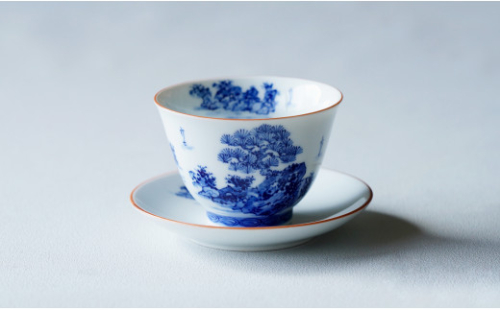 • 有田焼 手描き 山水絵 せん茶碗皿セット 小 【起山窯】食器 器 うつわ 茶器 煎茶碗 湯呑み 湯呑 茶托 小皿 菓子皿 食洗機対応 A30-642