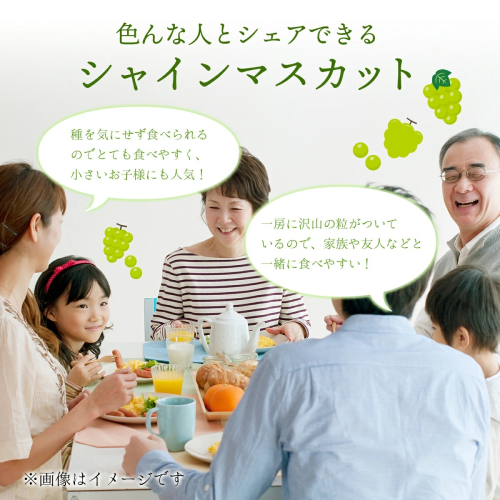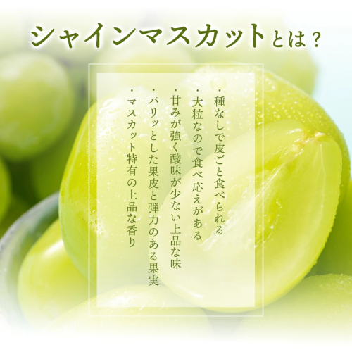 種なしで皮ごと食べられる大粒黄緑色ブドウ!大人気の爽やかであまーいシャインマスカットたっぷり2kg箱。