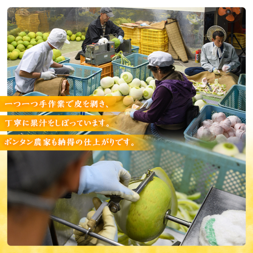 一つ一つ手作業で皮を剥き、果汁をしぼり,ボンタン農家も納得の仕上がりです。