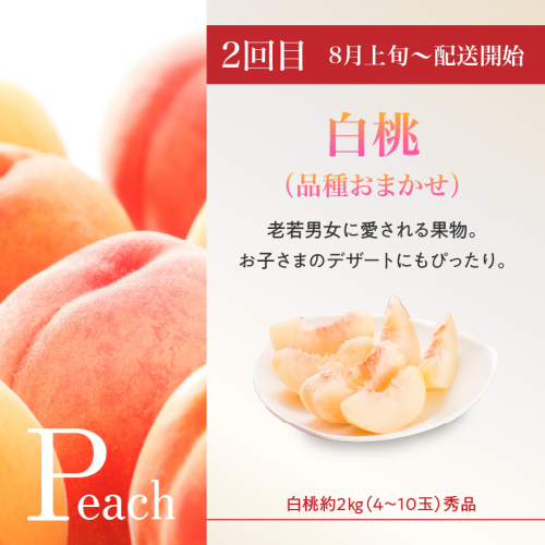 【定期便2回目】:白桃(品種お任せ)約2kg(4~10玉)秀品