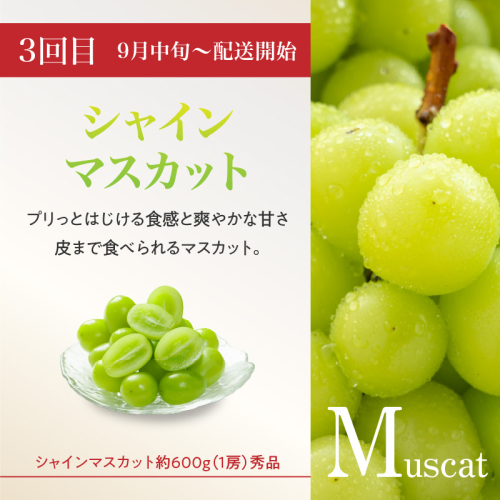 【定期便3回目】:シャインマスカット 約600g(1房)秀品