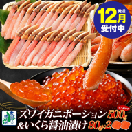 【厳選食べ比べ】本ズワイしゃぶ ビードロカット 1kg前後 蟹酢付 昆布塩加工 & いくら醤油漬け 80g×2P【海鮮 食べ比べ 北国からの贈り物 冷凍】 099H3449
