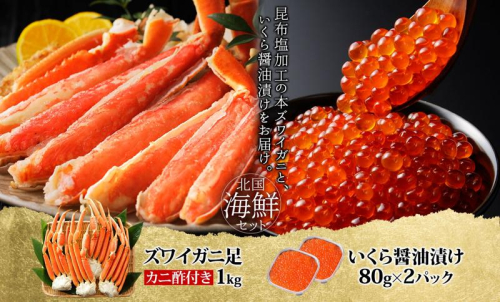 【厳選食べ比べ】ズワイガニ足 1kg前後 昆布塩風味 &いくら 醤油漬け 80g×2P【海鮮 食べ比べ 北国からの贈り物 冷凍】 099H3450