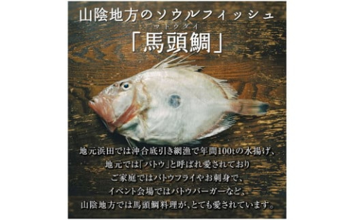馬のような顔をした魚で浜田では通称:バトウ=馬頭と呼ばれ、浜田市民の郷土魚です。