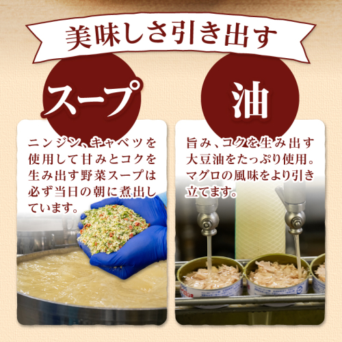 【原材料】まぐろ(輸入または国産)、大豆油、野菜スープ、食塩/安定剤(加工でんぷん)、調味料(アミノ酸等)