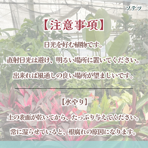 観葉植物を作って40年の生産者が栽培期間中農薬不使用で品質にこだわり、育て、寄せ植えし、出荷するまでの行程を行うことにより、相応の付加価値が生じているもの