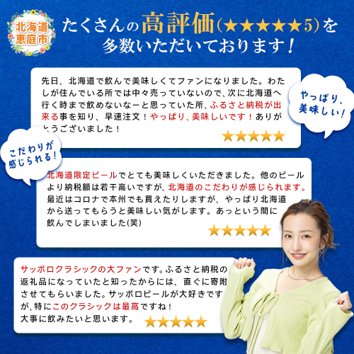 北海道に旅行に行った際初めてサッポロクラシックを飲み美味しさに感動しました。ふるさと納税でお得にお気に入りの味を飲むことができて大満足です!