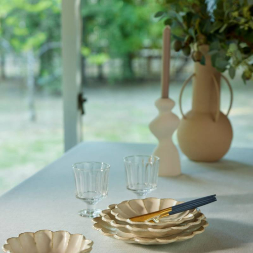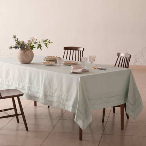 一見シンプルながらも、テーブルにかけると存在感を魅せることができる3段タックのテーブルクロス。