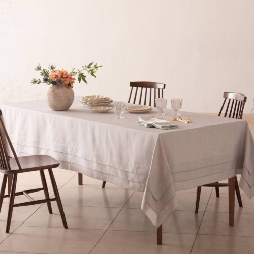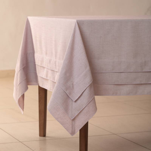 一見シンプルながらも、テーブルにかけると存在感を魅せることができる3段タックのテーブルクロス。