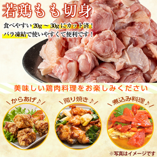 霧島市国分清水の鶏肉工場にて製造した国産若どりのもも肉を食べやすい20g~30gにカットし、便利なバラ凍結にしました。