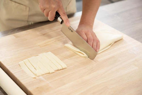 (2) 研究所職員の指導のもと、実際に麺を打ちます。