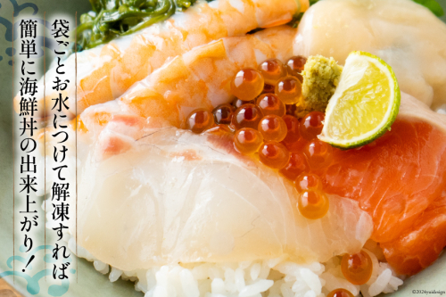 袋ごとお水につけて解凍したら、ご飯にのせるだけで、いつでもおいしい海鮮丼を召し上がれます。