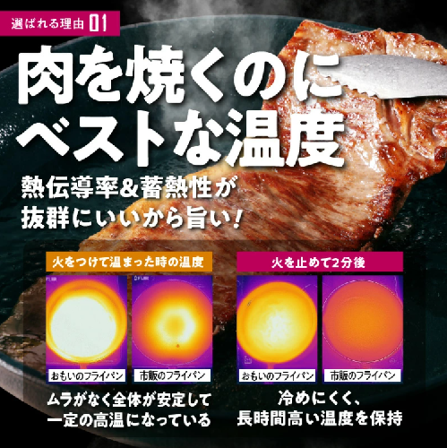 愛知県碧南市の鋳物を製造している石川鋳造株式会社が、世界で一番お肉がおいしく焼けるようにという思いから生まれた「おもいのフライパンシリーズ」